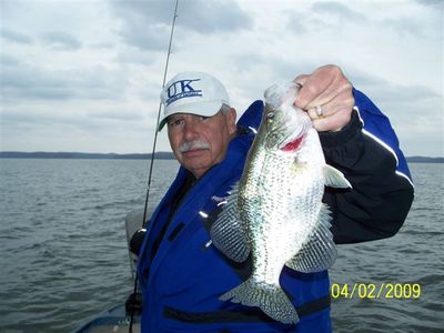 The Crappie are well into their spawn. Fish are being taken on small jigs and minnows fished along the shoreline 2ft deep, in brush piles 26ft deep, and anywhere in between. The fish are a little scattered but it is still possible to land on a big school of slabs.