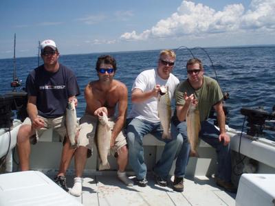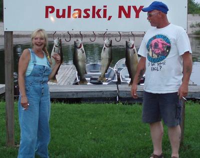 Salmon trolling on Eastern Lake Ontario was a lot tougher this week. Charters mostly targeted brown trout due to lack of king salmon. Brown trout trolling was fairly productive. Charters fished 70-90' running their riggers 10-15' off bottom. Bright colored Stinger spoons run 20-50' back worked best for our trips. Dipsy divers were productive run 180-220' back. We did manage to tangle with some king salmon Saturday on our morning charter but only landed one. The next few weeks the salmon fishing should improve as the kings start to move east towards the Salmon River. As long as brown trout continue to bite our charters will have plenty of action until the king salmon show up big time.