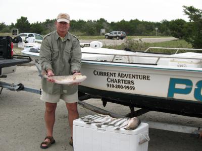 Oct. 14, I had Bob and Carol aboard for a half day of inshore fun. They were the winning bidders for a trip that I donated to the UNCW athletic association for a fund raiser. We spent the morning fishing around the Fort Fisher historical site and had a great time. In all we caught a half dozen Redfish, 3 or 4 Flounder and a couple of small Specks.