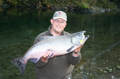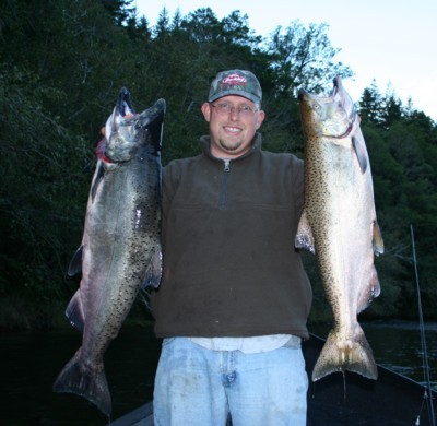 We fished the Elk several times the past month and caught plenty of nice salmon, many chrome bright. We were back-bouncing roe or pulling FlatFish wrapped with sardines.
