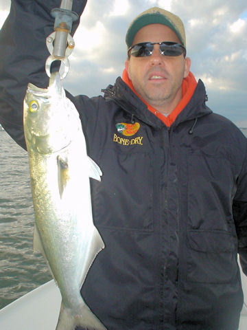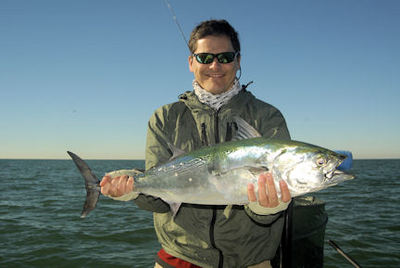 Longboat Key winter resident, Nick Reding, wade fished in north Sarasota Bay with me a couple of days last week. He caught and released several reds and a sheepshead on one trip and a couple of blues and a snook on another trip on a baitfish fly pattern. Jon Yenari and Kyle Ruffing, both from Sarasota, FL, fished with me in the coastal gulf off Siesta Key on Tuesday, 11/9, and caught and released 6 little tunny to 12-pounds on glass minnow fly patterns. Later in the day, they caught and released a nice trout and a 4-lb bluefish on Clouser flies at Stephens Point. Bill Moore and his son, Mark, both from Libertyville, IL fished Sarasota Bay with me on Friday, 11/12. They caught and released numerous trout to 22", a couple of reds, several blues and a Spanish mackerel on CAL jigs with shad tails and DOA Deadly Combos along the east side of Sarasota Bay.