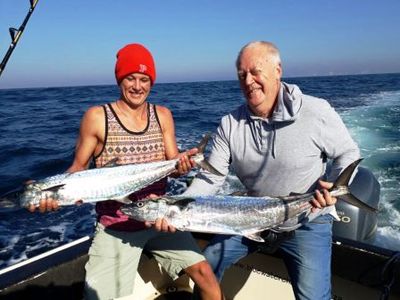 Stunning conditions, but the water was green and water temps averaging 23.6deg.C, before heading out to the deep there was a stop for live bait and then these were deployed inshore and some nice Couta (King Mackerel) were landed. After that the deep was quiet with the exception of a sailfish that made itself known but showed very little interest after that.