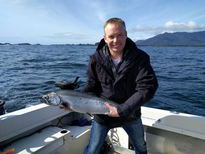 Chinook salmon fishing has been constant this past week in both Barkley Sound and closer to Ucluelet around Great Bear and Sail Rock. The weather has been up and down, meaning we have been confined to fish Barkley Sound, but the fishing there has been good. Every spring and summer, large amounts of herring and other bait fish will school up in the protected waters. Some years the fishing is better than others. This year's early season fishing so far has been as good or better than the past few. Fish are taking 3-3.5 inch Coyote and Silver Horde spoons from 60 feet to right on the bottom. You can expect 2-8 salmon per 8-hour trip right now. There are also lingcod around as well for those looking to get some white meat. We expect to be catching halibut soon too, but as yet haven't fished for them. Last year fishing was very good in April and based on how fishing was in March this year, I would expect April 2017 to be even better. We have heated boats for the early spring weather, which can be variable.