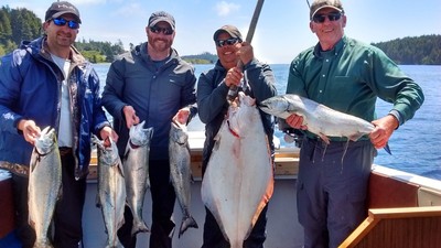 Halibut fishing has been pretty good at Big Bank on the troll, bottom bouncing Hali West and also on anchor. Coho are not showing up in great numbers yet, but are showing up both on Big Bank and in close to shore some days.