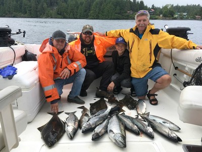 Big Bank has had some decent bites this past week near the Rat's Nose and South- East on the Egg. Barkley Sound had some good bites earlier in the week, though the fish were moving around from day to day, so it was a bit of a guessing game of where they would be. There have been some decent fish being taken in close to shore during both morning and afternoon trips. The bite has not been extremely fast, but the Chinook are mostly in the 12 to 25lb range with a couple around 30 lbs taken. Offshore small spoons, needle fish and cuddlefish hutchies are working. Inshore #3 Kingfisher spoons from Silver Horde have been working the best along with anchovies.