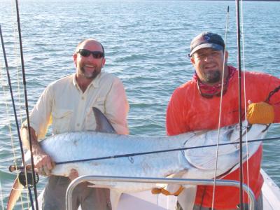 I really lost track of the number of fish we jumped in our 6 days of fishing but I believe we landed close to 15 tarpon. We also landed jacks, barracuda, snook, lizard fish, mutton snapper. If you want to catch a tarpon on a fly rod this is the place that you can pretty much be sure to do it. Pochy is by far the best guide I have ever fished with and I have fished tarpon in Florida, Mexico and Belize. He is a hard worker that started early and stayed late. Dark to dark a couple of days. The food on the boat was plentiful and good. There is nothing like cold fruit in the tropics. Not only was there a lot of fish but for the most part they were large. Pochy believes that my friend released a fish that could have been the world record on fly. It was estimated (using formula) right at 200 lbs( I think the record is 202). The smallest fish was taken in the mangroves and was only about 15 lbs. but everything else was 40 and up with many in the 60 to 100 range.
