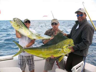 The fishing off Fort Lauderdale this month has been phenomenal. It's April and we're in the middle of the Spring fishing season and in South Florida that means there are some big game fish offshore. 7-9 miles offshore, there has been a beautiful weed line formation, littered with flying fish and other important baitfish. A few hours spent trolling offshore can be rewarding though, when it all comes together. The months of April, May and June bring with them the big game fish… Bull Dolphin, Tunas, Wahoo, Sharks, Sailfish and even Marlin. This is the season when you can go out there and catch that once in a lifetime fish. The Big Game has been catching some monster sized bull dolphins out there, scatter with some schoolie dolphin, blackfin tuna and the less common wahoo. Offshore fishing has been a pretty sure bet for us lately.