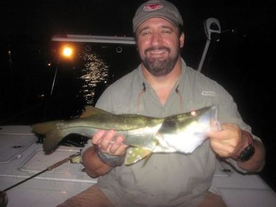 I spent some time recently scouting and found baitfish plentiful in the coastal gulf with Spanish mackerel feeding in them. I also found a tripletail that pounced on my DOA Shrimp! Bill Fox, from GA, fished a couple of pre-dawn snook/coastal gulf trips with me on Thursday and Friday, 8/18 and 19. He had good action both days but Thursday was the better morning when he caught and released 8 or 10 snook and a bonus redfish on my Grassett Snook Minnow and shrimp fly patterns on the pre-dawn portion of the trip. With the hardest 2/3 of a slam under his belt, we moved to some deep flats where he caught a couple of trout on an Ultra Hair Clouser fly to complete his slam! He also had steady action catching and releasing Spanish mackerel to 18" in the coastal gulf on Ultra Hair Clouser and glass minnow fly patterns.