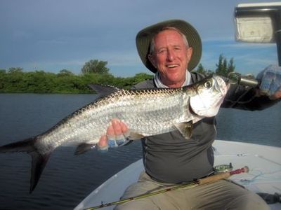Marshall Dinerman, from the Atlanta area, fished deep grass flats of Sarasota Bay with me on Monday, 9/26. He had good action catching and releasing trout and jacks on Ultra Hair Clouser flies. We also fished a backwater area where he caught and released a juvenile tarpon on my Grassett Flats Bunny fly with a 6-wt. His first tarpon on a fly!