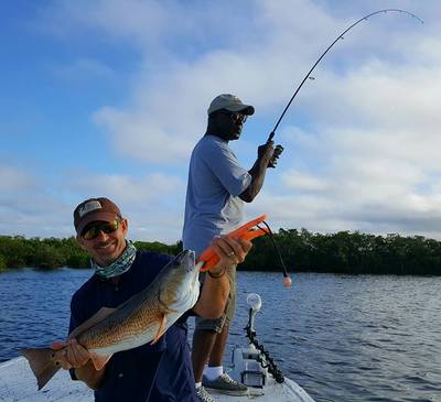 Red fish are schooled up in good numbers along mangroves and oyster bars, live green backs or small pin fish is the way to go. Incoming tide is producing a better bite for us. Trout are working there way into shallow water 2 to 5 feet, top water plugs and mirro dines are great search baits. Live green backs under a float is also deadly