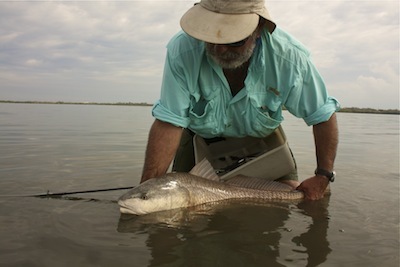 Then it was Todd's turn. Using the same fly he threw to a pair of reds. One swam off, one swam over and inhaled the fly. It was also the biggest red he's ever caught.
