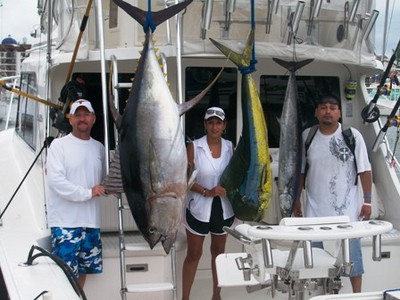 8 Yellowfin tunas 2 big ones, the Ana Maria reached El Banco about 8 am and it was wide open the tuna's were boiling the guys caugh 6 smaller tunas early in morning and 2 big girls in the afternoon after 1pm.