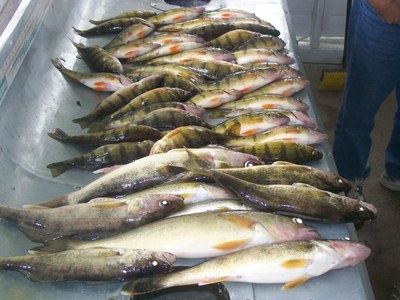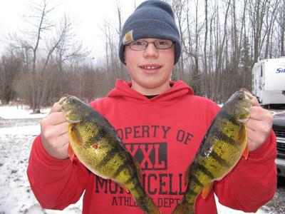 We expect first ice here at Gus' Place around the end of December. Pike spearing is very popular here when the ice is fresh and not yet to thick. Perch will be schooled in this past summers weeds @ around 8 to 15 feet during this early period. Walleye are usually deeper.