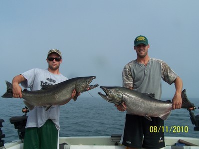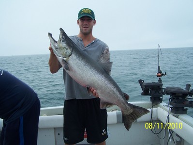 Finally we're starting to see decent action for salmon off the Salmon River. Salmon were biting in 150-160' - hitting 110-130 down.