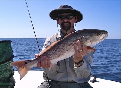 I was able to set the skiff on an easy drift, parallel to the shoreline, and fish a little myself. Tossing a DOA Bait Buster I got a slot red and several trout too.