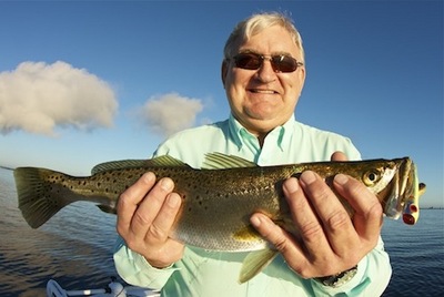 He hooked and lost a trout, then caught a redfish and another trout by casting blindly with a PolarFibre Minnow.