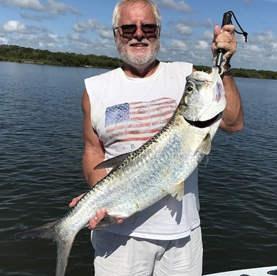 Catching has been steady all this summer of 2017, water quality remains good here in Mosquito Lagoon and Indian River at the New Smyrna Beach backcountry. Baitfish school numbers are as good as we have seen in years with large mullet shoals, pilchard and menhaden numbers. Backwater fishing with loads of variety including Seatrout, Snook, Redfish, Black Drum, Mangrove Snapper, Whiting, Jack Crevalle, Ladyfish to name a few, and always other some surprise catches like Tarpon, Sheepshead, and Mutton Snapper. On the Mosquito Lagoon flats we have been sight fishing skinny water Redfish, finding small schools and single fish in the shallow grass, off the edges live bait Trout fishing also good this summer with a couple Reds, Jacks, and quality Snapper coming up out of the drop offs also. Long time central Florida clients George and Joe came on their annual July trip on the flats, George caught the largest Red of the morning, sight fished out of a school and 31" long