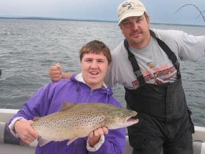 Well the king salmon finally decided to show up for their party on the east end of Lake Ontario! Of course with T-storms and young passengers I decided to take the easy route and brown trout fish. Which was quite productive with some of the nicest fish of the season coming to the net. Frog ice 20' back down 92' over 110-120 was HOT! We relied on the trout to keep us busy this weekend but that about to change. Several other charters trolling in 150-200' did very well on salmon and even a few steelheads mixed in. Green pro trolls with crinkle flies & chrome spin drs with mirage worked best run 115-130' down off the riggers- 350' off the dipsy divers- 500' of copper worked as well. The winds had finally settled and the temps improved dramatically over the weekend. Give us a call! We still have a few mornings and plenty of afternoons open. -Night trips will be starting around Sept 10- we run 2 trips a night and can accommodate large or small groups of anglers.