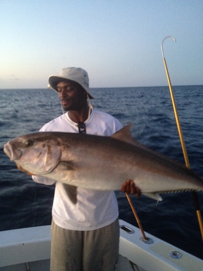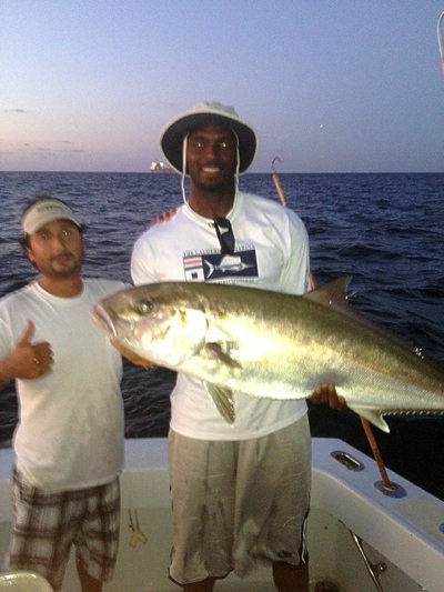 Towards the end of trip I decided we should try a shipwreck on the way home. It was getting dark but I wanted to catch some fish. On our first few drops we missed a few bites and I wasn't very happy, but on the last drop we hooked up and Plax got in the fighting chair. A monster amberjack gave him the workout he wasn't quite expecting! Some people think reeling in fish is easy, but when it all comes down to it; there is no machine in the gym that can prepare you for fishing! Nice job Plax!