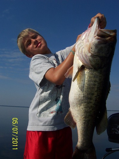 Curtis and 7 year old brother Mason landed a total of 11 bass today in 4 hrs fishing. All bass were caught on Large Wild Shiners fished in 3 ft of water around scattered Hydrilla. We were fishing near the locks on Lake Toho in running water.