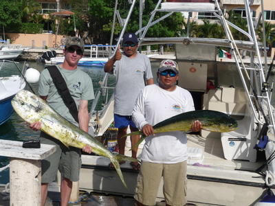 Normally this time of year we get wahoo. However, yesterday, Sept 1st was a great day. We only sent out three boats for four hour trips. The Wild Bill came in with an incredible 17 mahi-mahis in the morning, and 6 in the afternoon. Big Fish knocked down 12 in the morning trip.