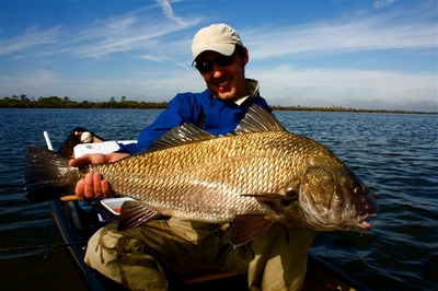 Finally he got a strike and brought a black drum of 10-12 pounds to the boat. It was the only bite he got.