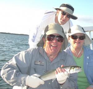 Skip finally caught several Spanish mackerel before we headed back to for a siesta before taking Ted, Judy and son Bob night snooking.