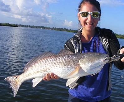 Fishing has been great here on Mosquito Lagoon this October 2012, water temperatures have dropped, reading 73'F a couple days ago, as the water becomes clearer moving towards winter, sight fishing the flats will only improve even more. Redfish and Seatrout will begin to gather into their winter schools. But now we still have early fall conditions, many schools of finger mullet still moving through the Indian River heading south with the baitfish migration. Bait of fresh cut mullet, live finger mullet and pigfsh has been my mainstay this month, as winter arrives the main bait will be select live shrimp and more artificials being used in the clear water. Here are young sisters Aiyana and Callista each with a great Redfish they caught out with me on one of my backcountry trips with their parents recently.