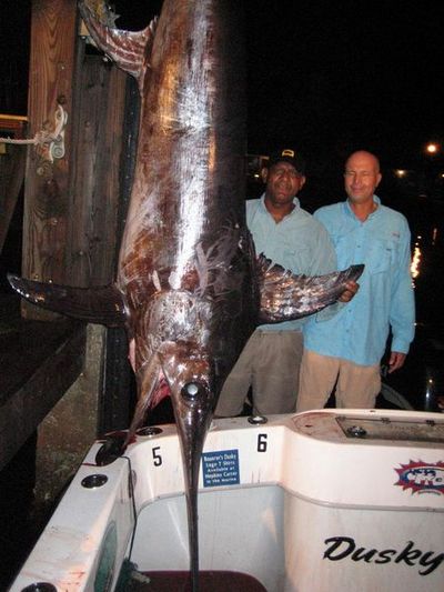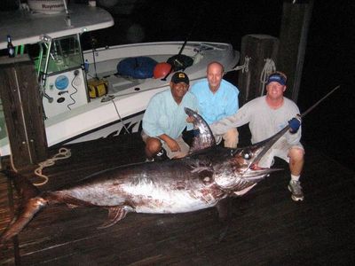 Bouncer"s Dusky 33 fished the Full Moon Adventures Summer Swordfish Slam with Capt Bouncer Smith, Crew Capt Steve Huddleston and Capt John Herndon and anglers Clarence "King" Flowers and Buster McLean.