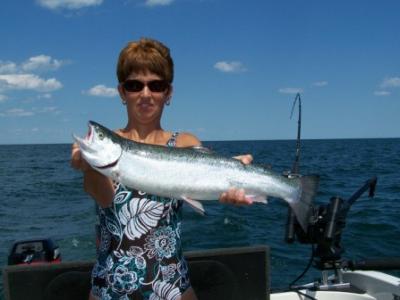 Good fishing was reported east of the marina in 59-63 FOW with the riggers set at 25-45 down. I was using Michigan Stinger spoons with copper and purple colors working well. I also had success on #0 dipsey back 85-120 on the #3 setting.