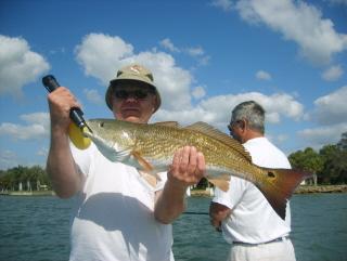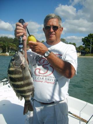 I had a second four hour just after the above charter and was hoping to put Dave Bradwell onto some great redfish action. We didn't hit them like Elvin and Nelson did, however Dave wasn't complaining because he enjoyed great redfish light tackle action - a twenty-eight inch redfish caught and released using only ten pound test line. He was looking for dinner, and found it with three sheepshead ending up the the live well before days end.