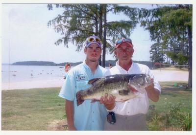 Hello, Anglers. ALERT!! Leesville angler, Donnie Gill, caught the second largest bass ever to be weighed in on Toledo last Saturday while fishing the Leesville Lions Club Invitational. The monster bass weighed 15.03 pounds on the official Toledo Tackle scales barely missing the current lake record of 15.32 pounds. In talking to Gill Wednesday, he stated that he caught the bass on south Toledo Saturday, June 27, around 7 a.m. while fishing about 22 feet deep with a Texas rigged 7 inch worm. The bass came to the surface but Gill said the bass was too big to actually jump. His tournament partner, Bret Bennett, of Slagle had the responsibility and excitement of netting the huge bass.