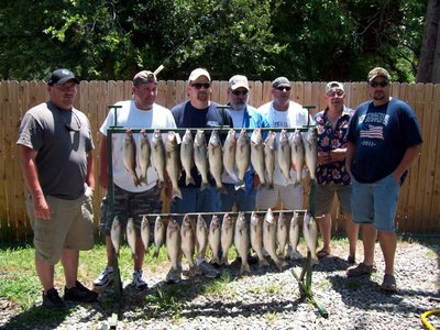 Lake Texoma elevation is 614.64 and our water temperature is 81 degrees. We are starting to see more larger stripers this past two weeks as they start to make their deep water runs on the south end of the lake. The stripers are still in the 65-75 foot water and moving fast but we have seen fish in the 11-18 lb range occasionally with alot of 2-4 lb fish. Limits of these good stripers is still hit and miss and it has been an early bite.