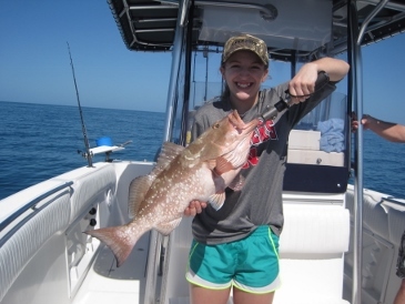 The first photo shown is of Abbey Kulus, with a 25-inch red grouper, caught on a pinfish.