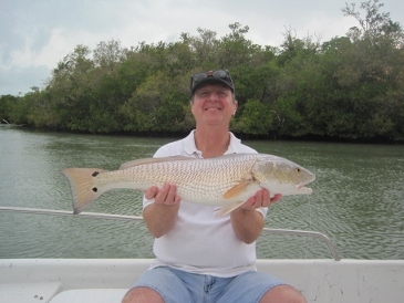 The winds weren't too much calmer on Thursday morning, 4/6, in southern Estero Bay, and Leeds Hutchinson and son, Bill, had to dodge a couple of rain showers with me, but their catch-and-release trip was productive, with three black drum, a sheepshead, a half-dozen mangrove snapper and 29-inch redfish released, after biting on live shrimp.