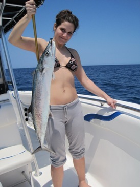 It was another exceptional day well offshore on Friday, when I fished with Chris Lemonis, his sister, Argie Lemonis, and their dad, George. We fished several spots between 28 and 37 miles west of New Pass, in depths of 55 to 72 feet. We came back with 43 fish and we also released even more than that. We caught a keeper red grouper at 21 inches, and released about 40 grouper in all, including reds to 19 ˝ inches and gags to 21 inches. We also caught a 36-inch king mackerel, 25 keeper lane snapper, two keeper yellowtail snapper at 13 inches each, and a mess of nice whitebone porgies that ranged 16 inches to 19 inches. We used shrimp for those catches, but then we switched to using some spot-tail grunts, which was the ticket for some shark. We released a 38-inch sharp-nose shark and a sandbar shark that was over six-feet long and estimated at over 100 pounds. We also released about fifteen mangrove snapper shorts.