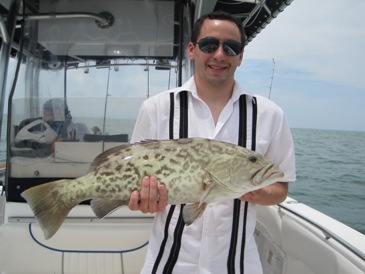 Monday morning, 7/18, I headed offshore with Mike and Dana McConnell, their son, Brody, and friend, Dylan. The group wanted to catch something to eat for dinner, but most of all, they wanted to sport-fish for something big. We achieved mission one first, catching porkfish, grunts and whitebone porgies to throw in the cooler. Next, we began catching bait-fish to use for luring goliath grouper. The group caught and released two goliaths, an eighty-pounder and a 150-pounder. We also released gag grouper and mangrove snapper shorts, along with a couple of puffer fish.