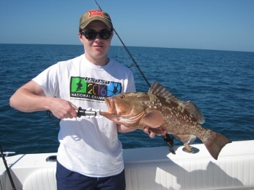 Mark and Monica Kusterer and their two young daughters, Jillian and Amanda, fished 15 miles offshore with me on Tuesday morning, 4/11, using squid for bait. They released fifteen red grouper shorts to 18 inches, and boxed ten keeper lane snapper and a dozen grunts. It was the girls' first fishing experience, and I think they are sold on the sport!
