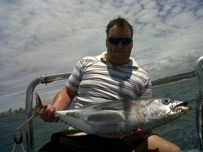 In the end we landed 3 Yellowfin Tuna 10-12Kg and a nice size Queen Mackerel (Natal Snoek) and we dropped a second Snoek as I only used Flouro leaders and no steel.