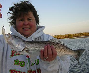 The Seatrout fishing has been great this January 2011 on Mosquito Lagoon. We have been targeting the deeper holes and sloughs with Gulp shrimp jigs and live shrimp fished right on the bottom in the cold 50' F water conditions. On most trips the last couple weeks the fish count has been from 40 to 75 fish, mostly Trout, also a good numbers of fun small size baby Redfish, with a few Flounder and Black Drum thrown in the mix. Most trips have had several or more keeper Trout with many smaller trout also in the count. Lots of fun fishing on light spin tackle and mostly artificial lure fishing. On the low wind days we are also targeting the shallow flats Redfish schools, a fun but challenging sight fishing tactic for better size Redfish.