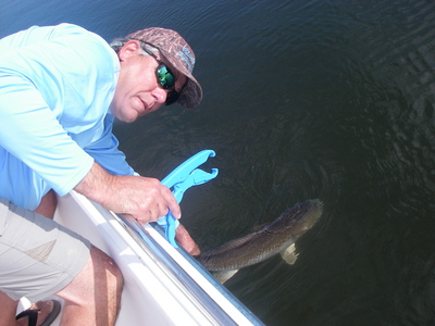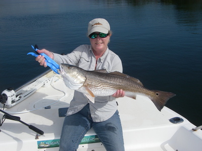 The fish made some runs ripping off drag but Karen soon won the battle and landed a nice 30" Red Drum.
