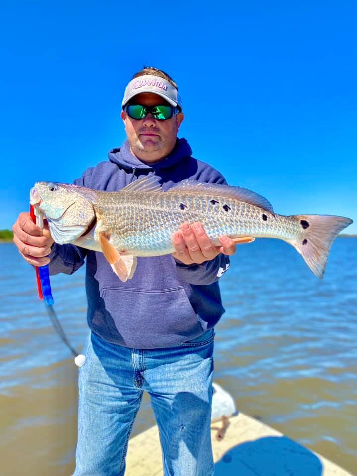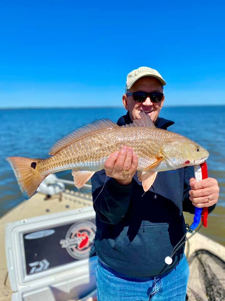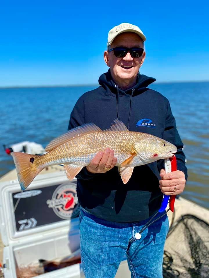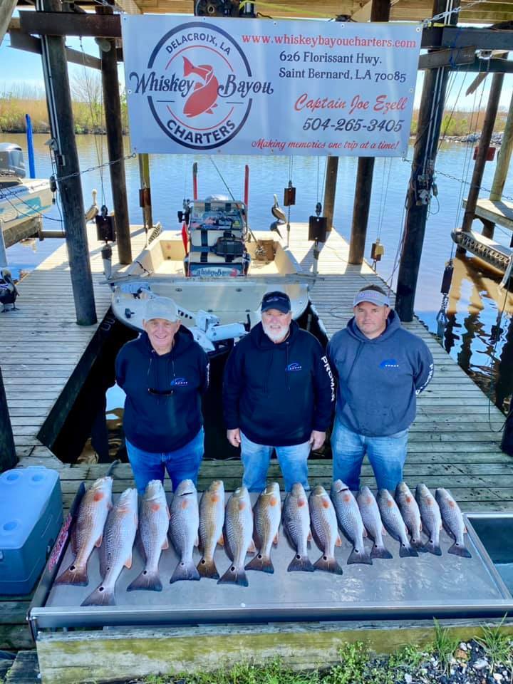 Today we helped Captain Chad Dufrene with Dufrene's Guide Service on a two boat trip. We had Tim, Butch and Thomas with Tim Hunter and associates aboard the Majek. The bite started slow but picked up as water temps rose. They ended the day with 15 keepers and 28 total on the clicker. A great crew that were a pleasure to fish with!