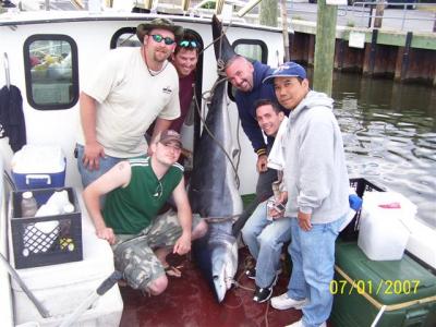 We made our first shark trip on July 1 and landed a 7+ foot mako. Great fish to go along with 20 more blue sharks that day(several 200+ pounds)! We had three hours during the day in which we had a fish on the line the whole time. It can be that amazing. Going forward in July and August, striper fishing off of Race Point, though good, should be planned as a weekday event—on the weekends the great fishing there brings far too many boats in far too small of an area. It is too chaotic with that much traffic---plan your trips there for the weekdays and we'll have fun. What a day—ending with a 250# mako amongst friends!!!