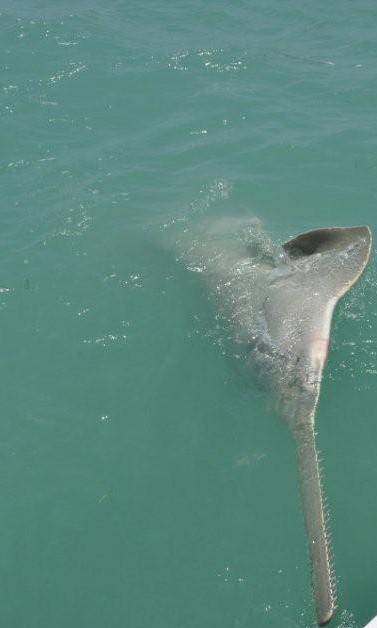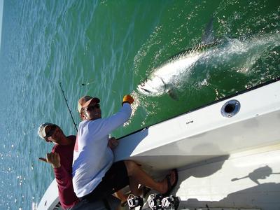 Capt. Rick Stanczyk fished with his father, Capt. Richard Stanczyk Sr., and friend Capt. Dave Peck from North Carolina down here for the winter today. We fished some channels between Islamorada and Flamingo in the morning, got a late start around 8:30, but still had some good falling tide. Caught plenty of seatrout, some ladyfish, and a couple good pompano for dinner. After hitting a few spots we moved out to hit some good tarpon holes as we had heard there were some free-jumpers spotted the day before, and we saw a couple in some deeper channels while we were running around back there. We set up about 11:00 when the tide started coming in, and boy was it fantastic! Our florida tarpon fishing trip saw 4 tarpon hooked in the air, however we were only able to get one to the boat. We even hooked one on a light rod with jig/shrimp. We also caught a couple of blacktip sharks. The prize of the day though was a 500 lb sawfish, Capt. Dave Peck had never caught one so Rick found one for him. We caught him on a tarpon rod with 80 lb mono leader and a small 4/0 hook, amazingly, he took off like a frieght train then stopped dead in his tracks and hugged the bottom while we finger-tipped him up with the leader and got a good look at him. We released him unharmed as these are very rare and protected fish - true dinosaurs!!! Hopefully this is a good sign that it will be a fantastic year for our florida keys fishing!!!