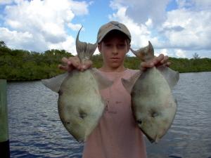 The photo shown is of ten-year-old-angler, Blake Dargis, with a pair of 16 inch triggerfish caught on a recent offshore trip.
