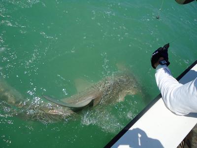 Capt. Rick Stanczyk fished Todd Belinger and his son today for some great florida keys fishing in Islamorada on March 17, 2011! We left out early around 7:15 right before the sun starting rising. We stopped in the back where I've been having luck lately near flamingo and caught plenty of trout, ladyfish, jacks, and a few pompano on the last of the falling tide back there. Put a big rod out while doing so and caught a few sharks there too. Once the tide died we moved further up the channel and waited for it to come in. We caught several more sharks there and had one tarpon bite we missed, then hooked about a 60 lber we landed! After the the weeds start really rolling through so we moved on a little further out towards the gulf of mexico and fished another deep channel. Plenty of small blacktips in there we probably caught another 6 of those in there, and another larger 80 lb tarpon right off the bat! Then we hooked a 150 lb hammerhead that we fought for about 30 minutes and got him up for a picture alongside the boat! The waters back to normal and getting warmer as we get into spring, the tarpon are getting happier and soon it will be full on! I'm starting to take some night trips now, book your days soon as I only have a handful left now through May!