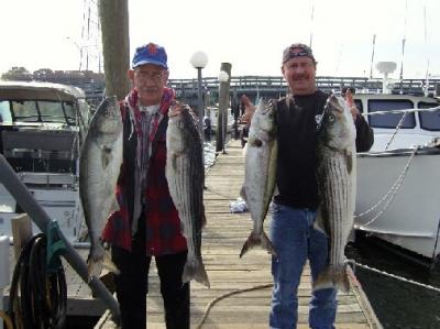 Capt Carm and I ran a quick turkey day 4 hour trip with Tire John and Doug (Family Matters) and his dad Doug Sr. Beautiful day on the water we trolled shads at the sticks and landed about a dozen bass up to 33"s,4 being keepers and 2 blues up to 12 pounds. Nice to fish with these guys always a lot of fun and laughs really great group of guys. Didn't see much else caught at the marina today.