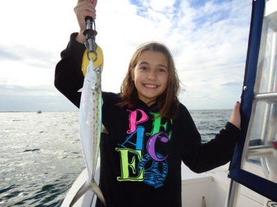 Southwest winds and building swells slowed today's Spanish Mackerel action. Unlike the last 10 days were catching 30 fish an hour per angler it was work today. Travis and his 7 year daughter Maddie here from Boston were fun to watch. I loved it when Maddie said dad I have 8 fish and you have only 2!