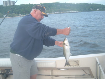 Made a run, but had lost the tide. Marked tons of fish but not bite. Changed locations and anchored up. When the tide started running the Slammers started biting. BLues to 12 lbs made the box. Nothing more fun than to watch youngsters battle Blues. Came in by 12 so everyone could be with there Moms. Day was 10 out of 10.