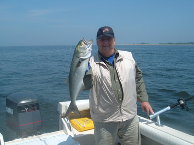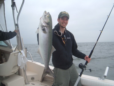 Had Rich Brown along with his friends Chris and Andy on board today for some Striper Fishing. Wind was honking down the bay against an incoming tide, nade it impossible to anchor. Went in search of some reads, found fish working on Bunker off the Navy Pier but no Linsiders home. Headed further back in the bay and threw out the Stretchs got a Jumbo BLue, then Nodda. Ran over to the Reach, got great reads but noone wanted to Chew. Slide over to the Knoll now that the tide was running out, nnothing bt Skates and snails. Did not see but a hand full of fish landed on the others around us. Ended the daay pulling Stretches again, but some more Jumbo BLues in the boat. Great day to be on the water, guys were really patient, but were not rewarded.